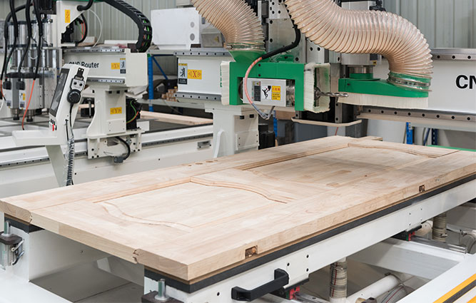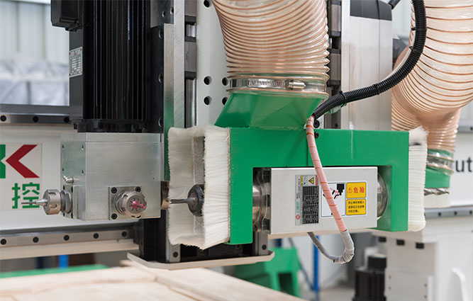 2、側(cè)面鎖孔采用銑刀擺動裝置、變頻電機、真空吸附門板,自動銑削成型。