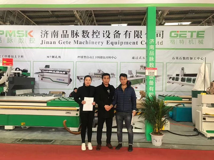 2018年品脈數(shù)控參展北京建博會取得圓滿成功,現(xiàn)場簽訂河北滄州崔總、遼寧錦州王總、聊城張總、河北廊坊吉總、吉林長春趙總、湖南岳陽朱總,河北保定丁總、德州王總、石家莊張總、李總,四川達州劉總,安徽阜陽王總,河南信陽周總,西安邢總,青島李總展會現(xiàn)場訂購品脈數(shù)控板式家具數(shù)控生產線設備。