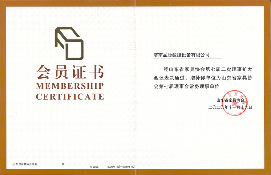 山東濟南品脈數(shù)控榮獲山東家具協(xié)會第七屆理事會常務理事單位