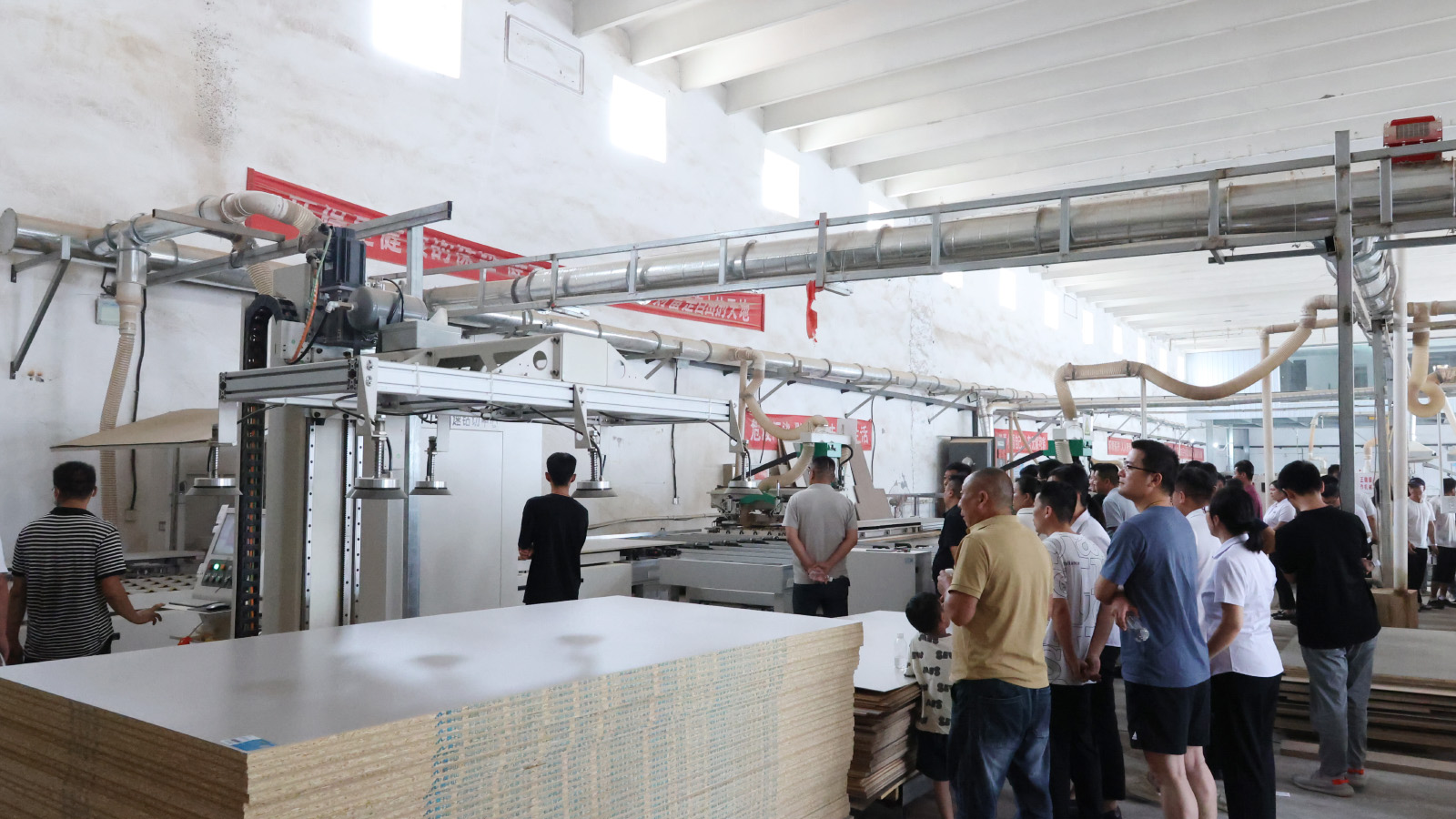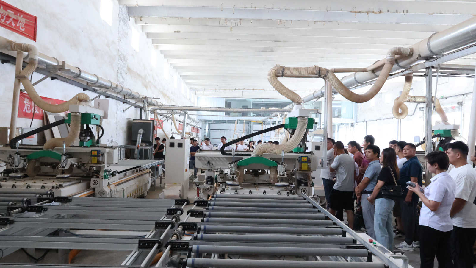 及自動化技術(shù)的優(yōu)勢,實地參觀了和益宅配及每屋美家兩家家具企業(yè)的生產(chǎn)現(xiàn)場。讓嘉賓們親身感受品脈數(shù)控高速鉆切中心及單元連線為板式家具廠降本增效,產(chǎn)能升級帶來的實際應(yīng)用效果。