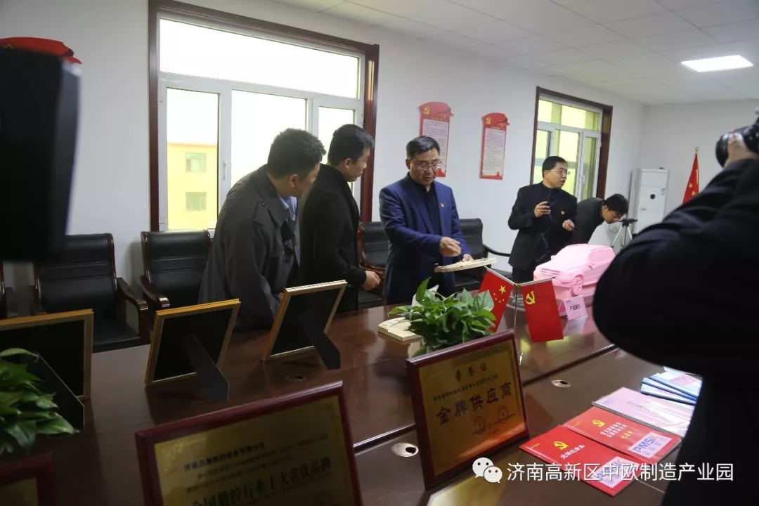 企業(yè)的發(fā)展壯大了離不開黨的引領(lǐng)。高新區(qū)是企業(yè)向往的地方,政策好、配套強(qiáng)、服務(wù)優(yōu)。品脈從歷城劃轉(zhuǎn)后,黨員天天盼著早日有一個(gè)組織的家。黨建指導(dǎo)員來到企業(yè),了解情況、傾聽訴求。今年9月10日,品脈支部正式成立,目前有3名正式黨員,2名黨員組織接轉(zhuǎn)中。10月12日,園區(qū)綜合黨總支為新建支部舉行了隆重的成立儀式,李濤同志為支部揭牌、授旗、贈(zèng)書、劃撥黨建經(jīng)費(fèi),并到公司考察調(diào)研,解決企業(yè)遇到的實(shí)際困難。