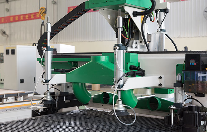 機器配備一套意大利進口(5+4)9V排鉆包,專業(yè)解決柜體生產(chǎn)時的孔位問題,同時機器擁有兩套6KW主軸分別對板材進行拉槽和開料切割。目前此機型主要搭配紅外側孔機進行板式家具生產(chǎn),每天八小時的加工產(chǎn)量可以達到60多張板左右。機器加了自動上下料功能能夠減輕人工勞動的負荷量,提高機器的加工效率,自動化程度高。