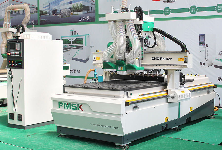 拉米諾數(shù)控排鉆開料加工中心,主要用于板式家具生產(chǎn)的鉆孔、銑槽、切割加工和櫥柜門板的雕刻、銑形加工。這款機(jī)器配置了9KW自動(dòng)換刀主軸和大容量刀庫(kù),可以解決各種復(fù)雜生產(chǎn)工序,同時(shí)機(jī)器還配置了進(jìn)口排鉆組和四軸鋸,能夠高效率解決板式家具三合一、二合一連接件所需安裝孔及拉米諾、木得意、U型扣等隱形連接件所需安裝槽,是目前所有開料機(jī)機(jī)型中功能最全面,效率最高的數(shù)控設(shè)備。